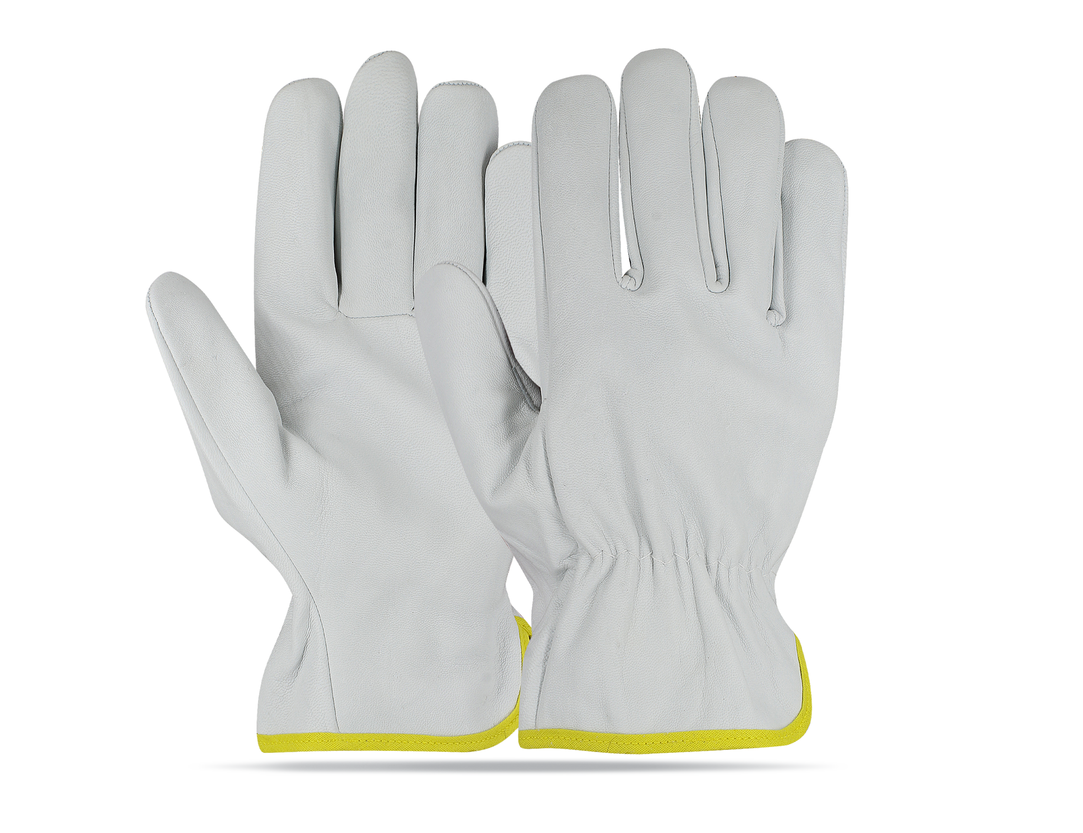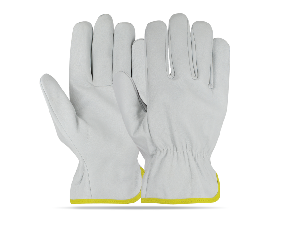 Leather: Goatskin / Sheepskin leather Colour: Natural Thumb: Wing thumb Additional: Shirred elastic back cotton hem