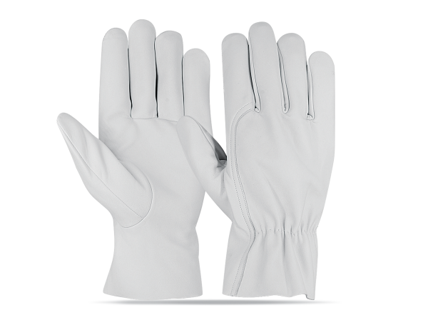 Leather: Goatskin / Sheepskin leather Colour: Natural Thumb: Wing thumb Additional: Index finger, cotton hemmed shirred elastic back