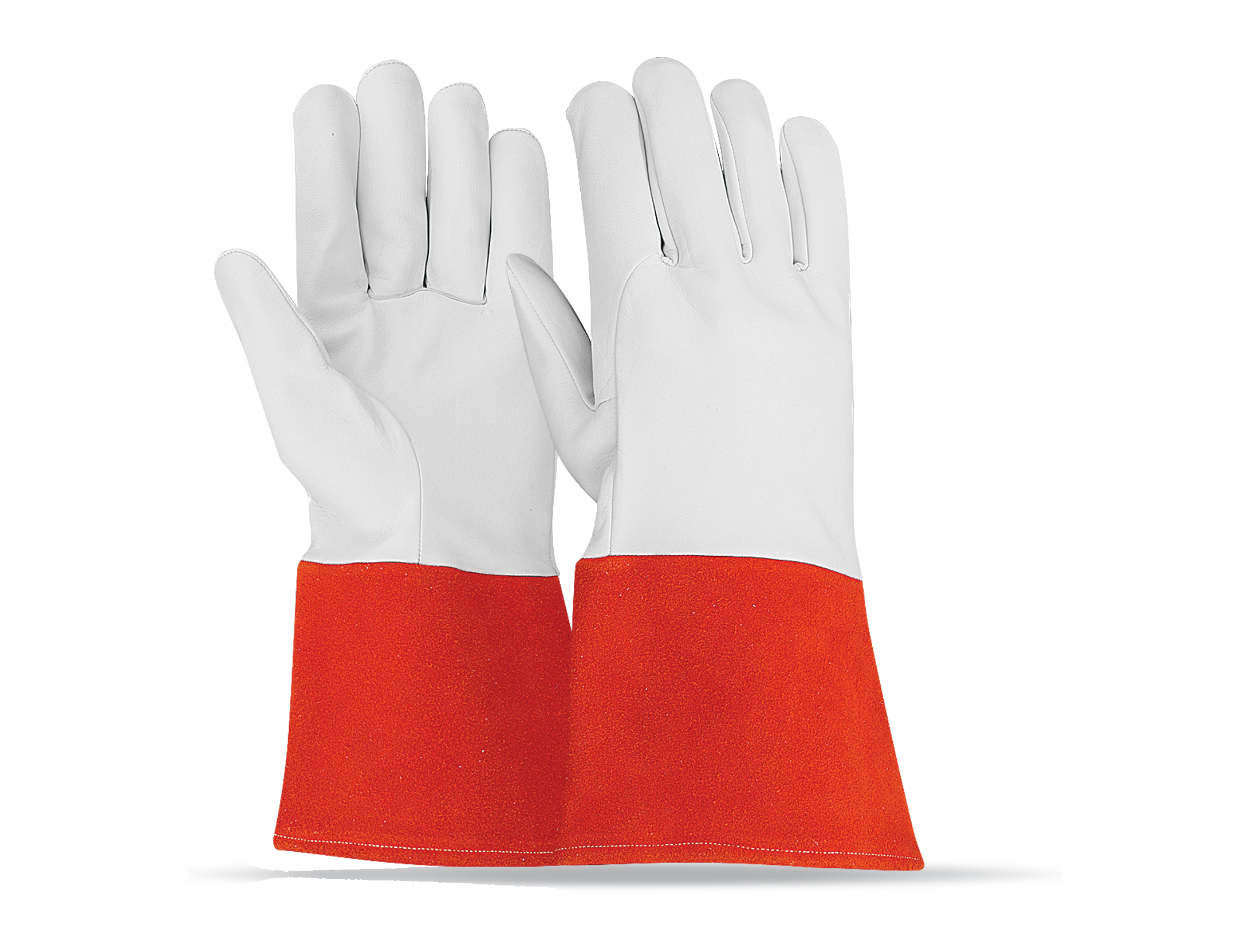 Leather: Goatskin leather Color: Natural Thumb: Straight Cuff: 10 cm red cow split leather cuff Additional: Wrapped around index finger Kevlar seems :Brand To BE SAFE INT,