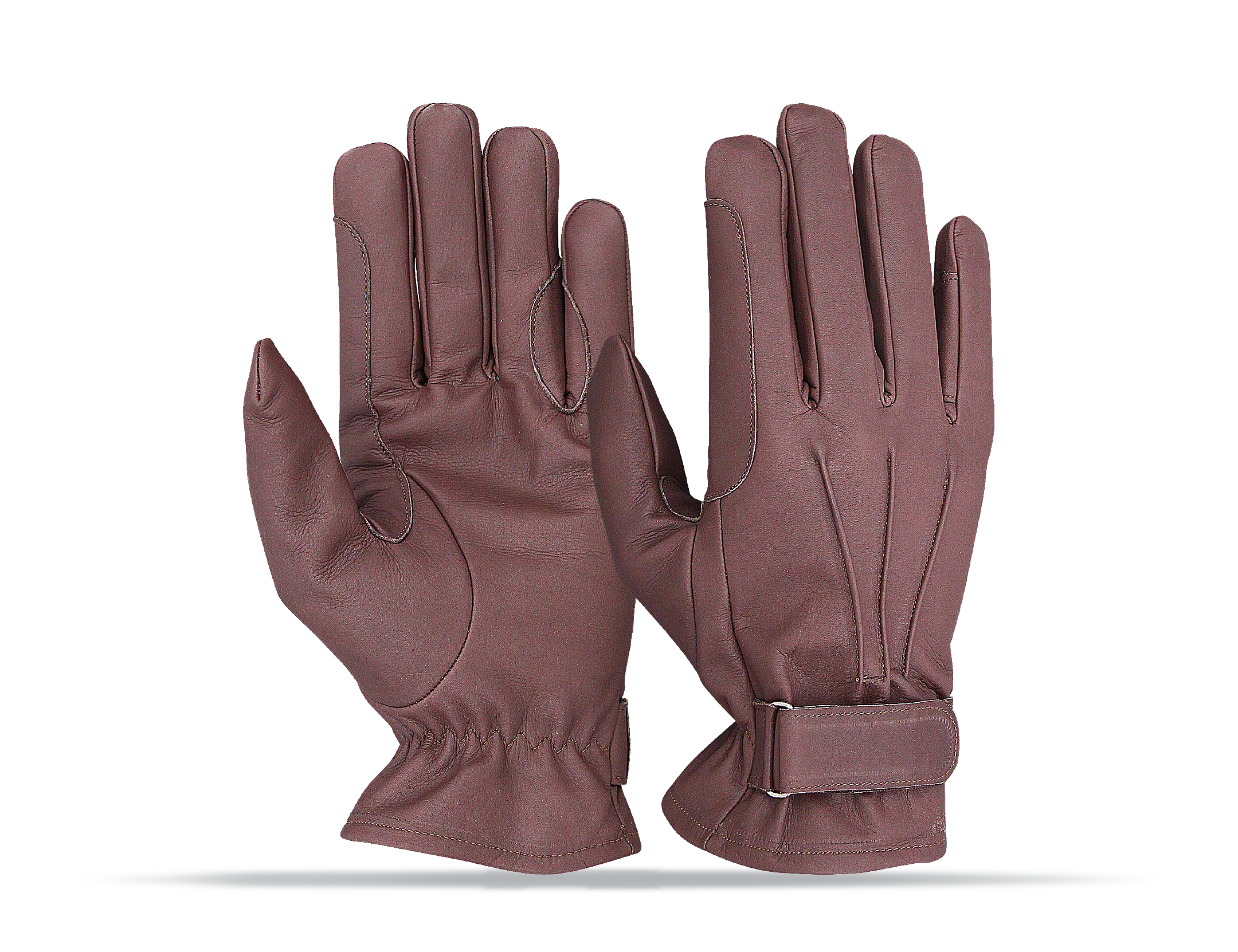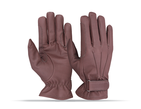 Goatskin leather Back cotton fabric wrist elastic & Velcro closure.